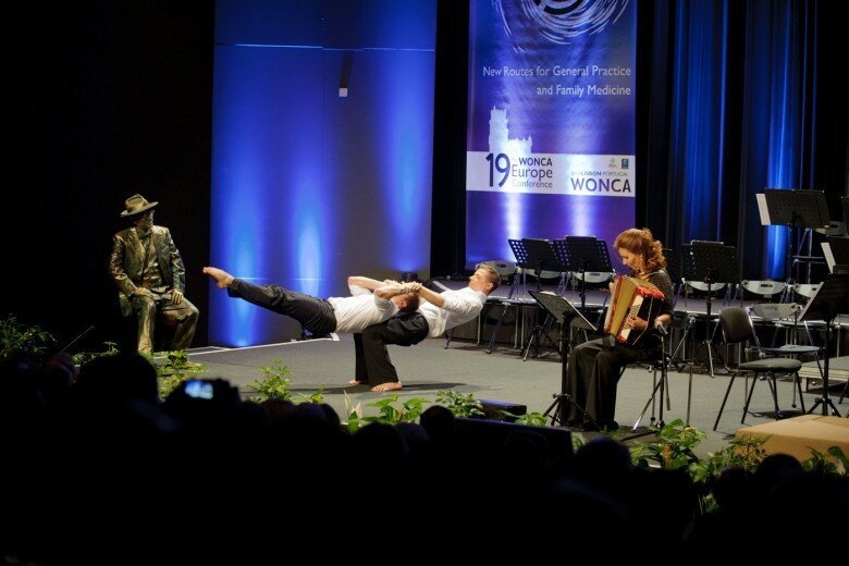 Just before the brilliant opening conference presented by Joana Carneiro (music director of the Berkeley Symphony and invited maestro of the Gulbenkian Orchestra) and the performance of the Lisbon Metropolitan Orchestra, the delegates to the 19th WONCA Europe Conference were greeted with an artistic moment (courtesy of acrobats and an accordion performer who is also a member of the organizing committee). Then, national and international leaders of the health sector, namely the president of the Portuguese Association of General and Family Medicine (APMGF) and chair of the Conference, João Sequeira Carlos, and the president of WONCA Europe (Job Metsemakers) took the floor.